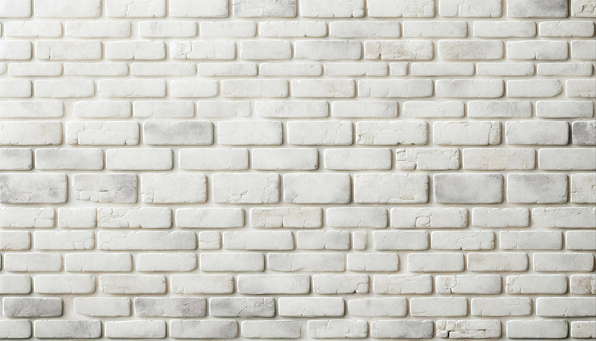 Du premier motif au dernier, vous y trouverez : brique beige multicolore, brique blanche claire, brique blanche peinte. Chaque design est proposé en format panoramique, imprimé aux dimensions exactes de votre mur — sans découpe ni raccord approximatif.