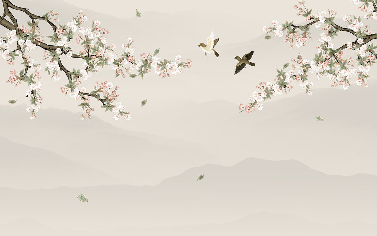 Le cerisier en fleurs, un classique indémodable qui habille le mur avec grâce. Cette collection rassemble 12 designs pour donner de la personnalité à votre mur, dans un style poétique et apaisante.