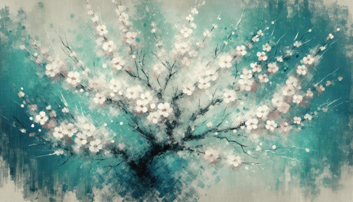 Papier peint cerisier en fleurs, inspiration japonaise. Ambiance douce et poétique pour chambre, salon ou espace zen. Sur mesure, intissé.