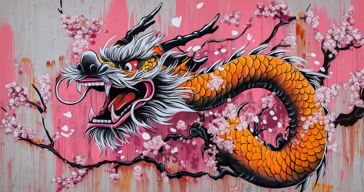 Du premier motif au dernier, vous y trouverez : brique blanche graffiti bleu, dragon chinois street art, graffiti formes abstraites rouge turquoise. Chaque design est proposé en format panoramique, imprimé aux dimensions exactes de votre mur — sans découpe ni raccord approximatif.